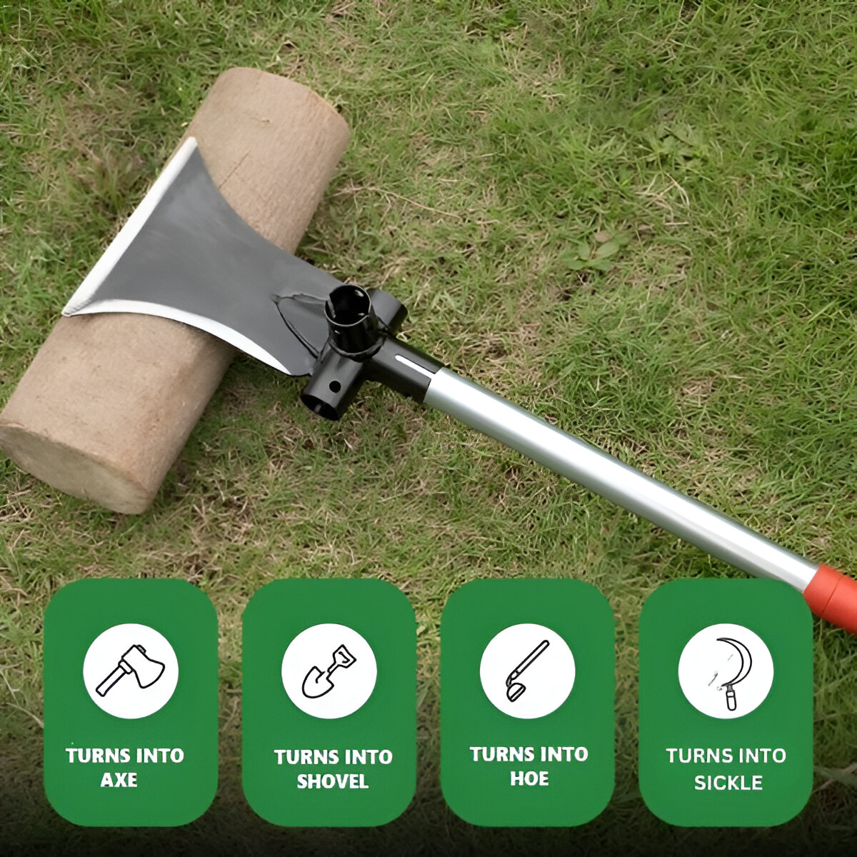 🛠️ 4-in-1 disain: Kirves, labidas, kõblas ja sirp ühes!