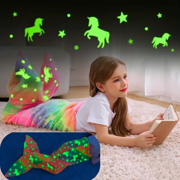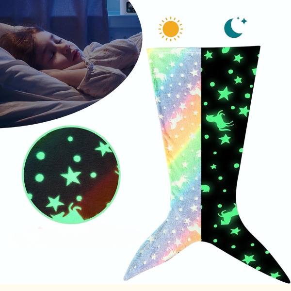 MERMAIDREAMi tekk helendab pimedas, pakkudes rahustavat valgust, et leevendada öiseid hirme. Lihtsalt pange see 20 minutiks päevavalguse kätte ja see helendab pehmelt kogu öö. Valige hai- või merineitsi sabakujundus, et teie laps saaks magada.