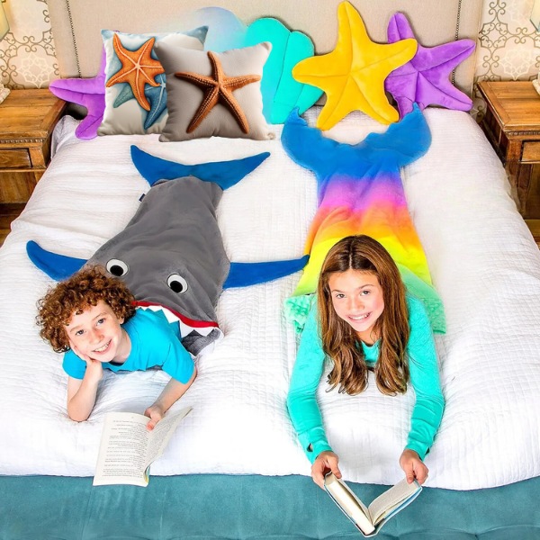 Valige kas hai- või näkisaba tekk. Ideaalne energilistele lastele, kes armastavad mängida ja teeselda, rahuldab see tekk nende metsikut külge, hoides neid samal ajal soojas.