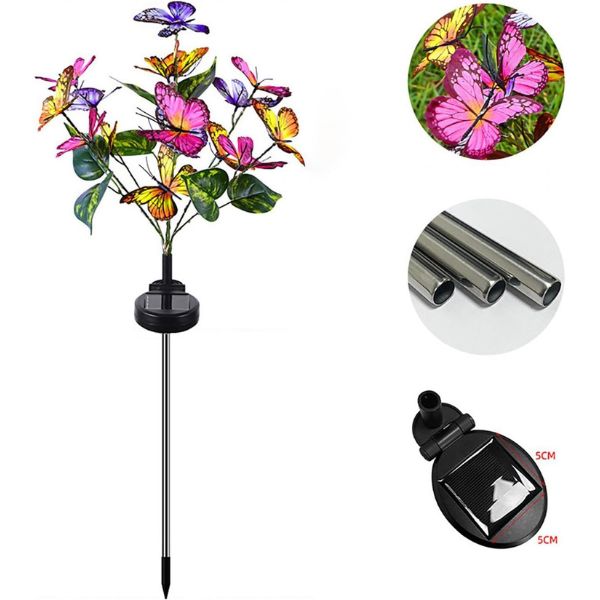 Elutruude kangast liblikatega ja mitmevärviliste LED-tuledega aiatuled, need päikeseenergial töötavad aiatuled on kindlasti pimestavad ja rõõmustavad. Lisage oma aeddekoratsioonile oma unikaalse disainiga veidrusi. LED-tuled on energiatõhusad ja kiirgavad sooja, kutsuvat sära.
