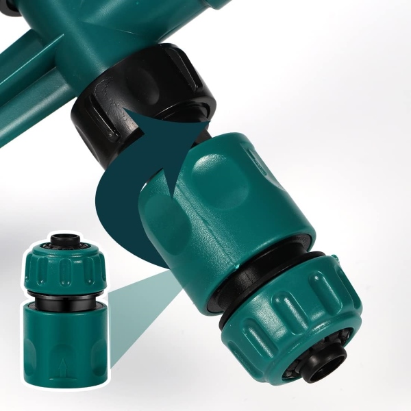 ROTOSPRITZ on valmistatud kvaliteetsest ABS-klastrist ja lekkimiskindla konstruktsiooniga, mis tagab stabiilse jõudluse ja pikaajalise vastupidavuse. Kolme varrega pöörlevat otsikut saab reguleerida erinevate pihustusnurkade jaoks, mis rahuldab erinevaid kastmisvajadusi ja pakub mitmekülgsust teie aia hooldamise rutiinis.