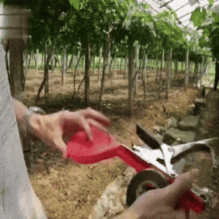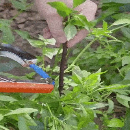 Rihma tangide vahel venitamiseks vajutage lihtsalt käepidet. Seejärel mähitakse teip ümber taime, mida soovite siduda. Teibi pingutamiseks ja lõikamiseks vajutage käepidet uuesti. Väga lihtne! – ärge muretsege oma taimede kahjustamise või neile valu tekitamise pärast, kuna teip ja klammerdaja tagavad õrna, kuid kindla haarde.