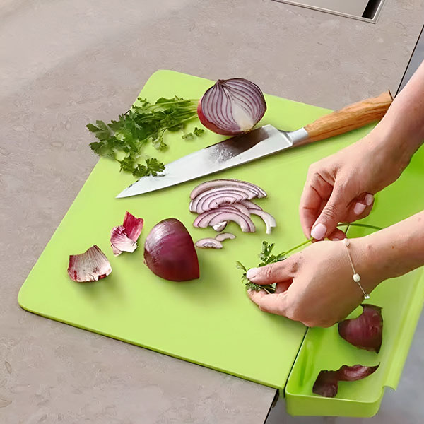 Hoidke oma köök korralik ja tõhus! 🍅🍴 Selle lõikelaua eemaldatav konteiner püüab kõik teie tükeldatud koostisosad, muutes söögi valmistamise lihtsaks ja säästes koristamise aega. 🧽✨ Ütle hüvasti töölaua segadusega!