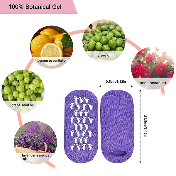 Silikoonist sokkidel on geelvooder, mis on rikastatud kõigi oluliste vitamiinide ja ainetega, et pehmendada kõva ja pragunenud nahka!