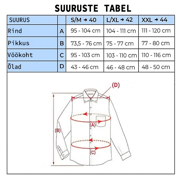 Materjal: 97% polüester ja 3% elastaan